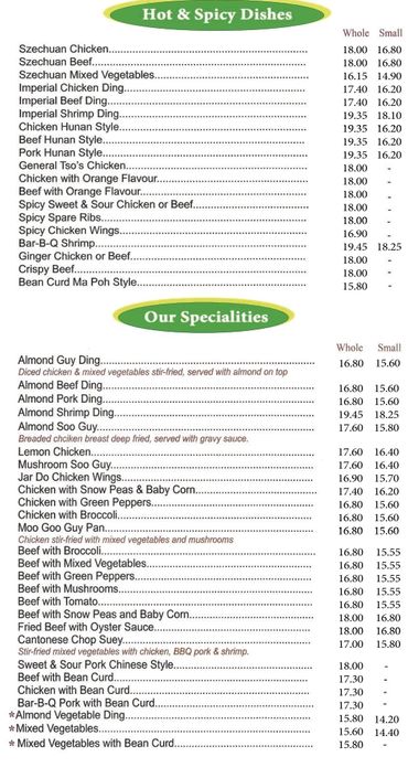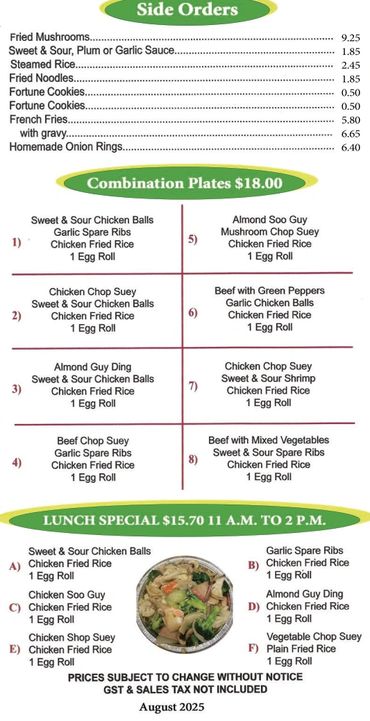 Silver Dragon Chinese Food Take-out and Delivery 613-828-7220 No MSG
